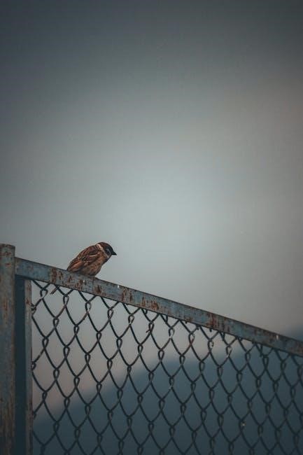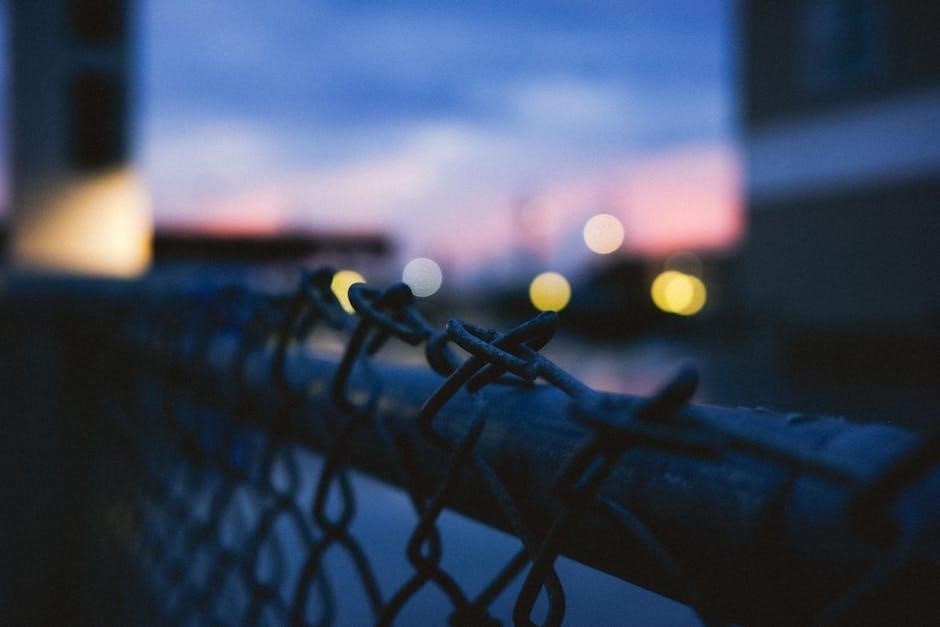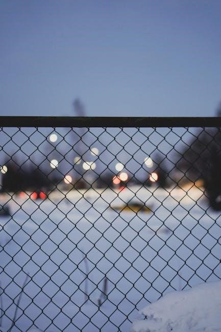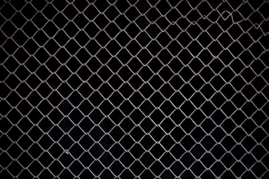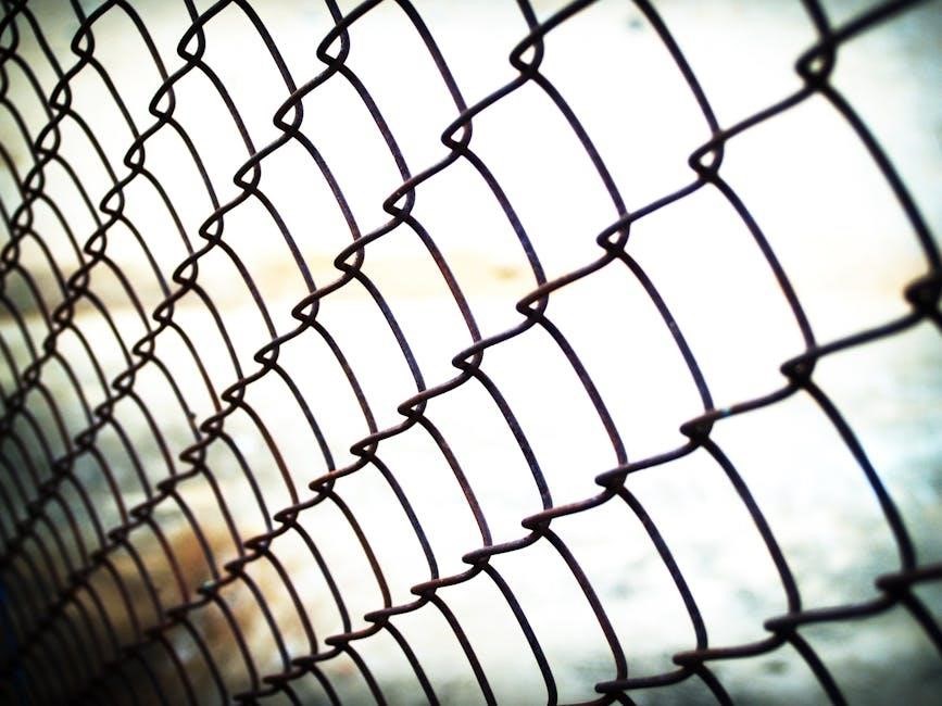 Address rust spots immediately with a wire brush and galvanized paint. Tighten any loose tension bands or fittings. The installation guide’s maintenance section offers detailed cleaning and repair instructions for optimal fence longevity.