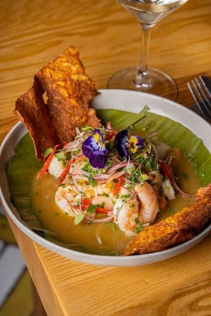 Priced at 1590 rubles, inclusive of VAT, this dish reflects Jose Peppers’ dedication to quality ingredients and culinary expertise․ The PDF menu serves as a convenient guide to explore this and other seafood specialties, promising a delightful dining experience․